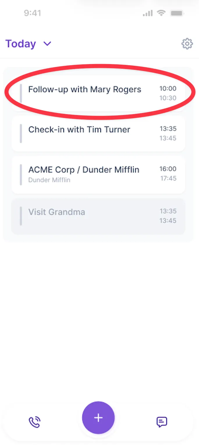 Step 1: From your agenda overview in your mobile app, tap on a specific meeting you would like to interact with Donna
