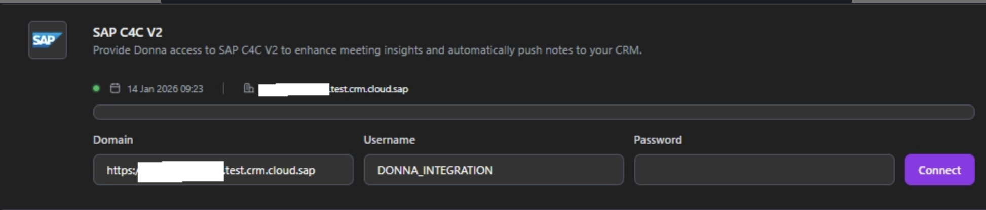 Once the integration user is ready, connect SAP to Donna.