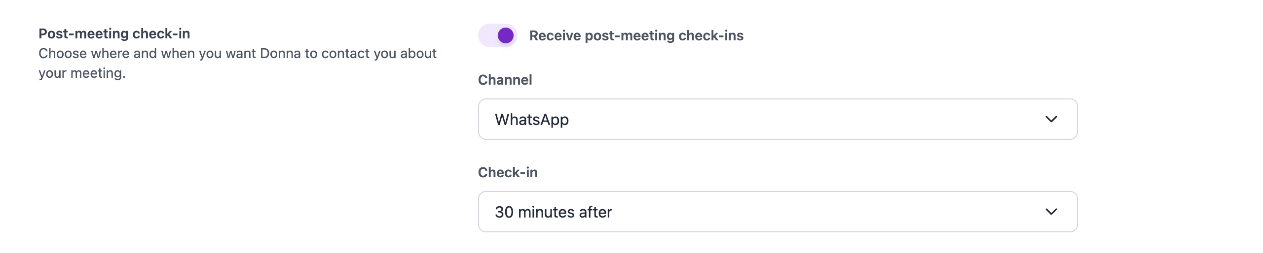Configure how many minutes before your meeting you want to receive the post-meeting check-in